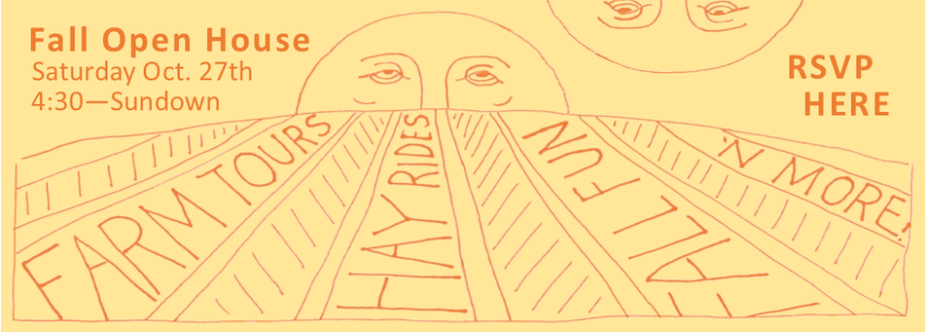 Quick reminder: save the date for our Fall Open House on Saturday, October 27th from 4:30 - sundown. RSVP here.